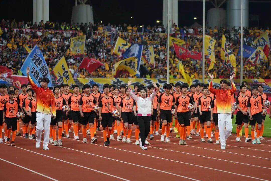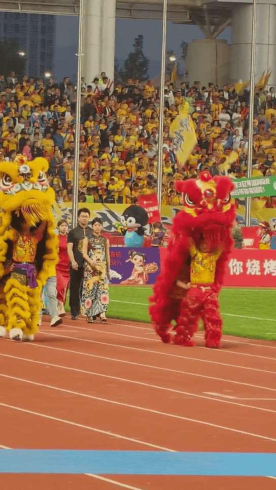 球迷陆续入场,特邀MC与现场球迷激情互动,万人同唱《小燕子》+《洪湖水浪打浪》,点燃全场热情,气氛燃爆!